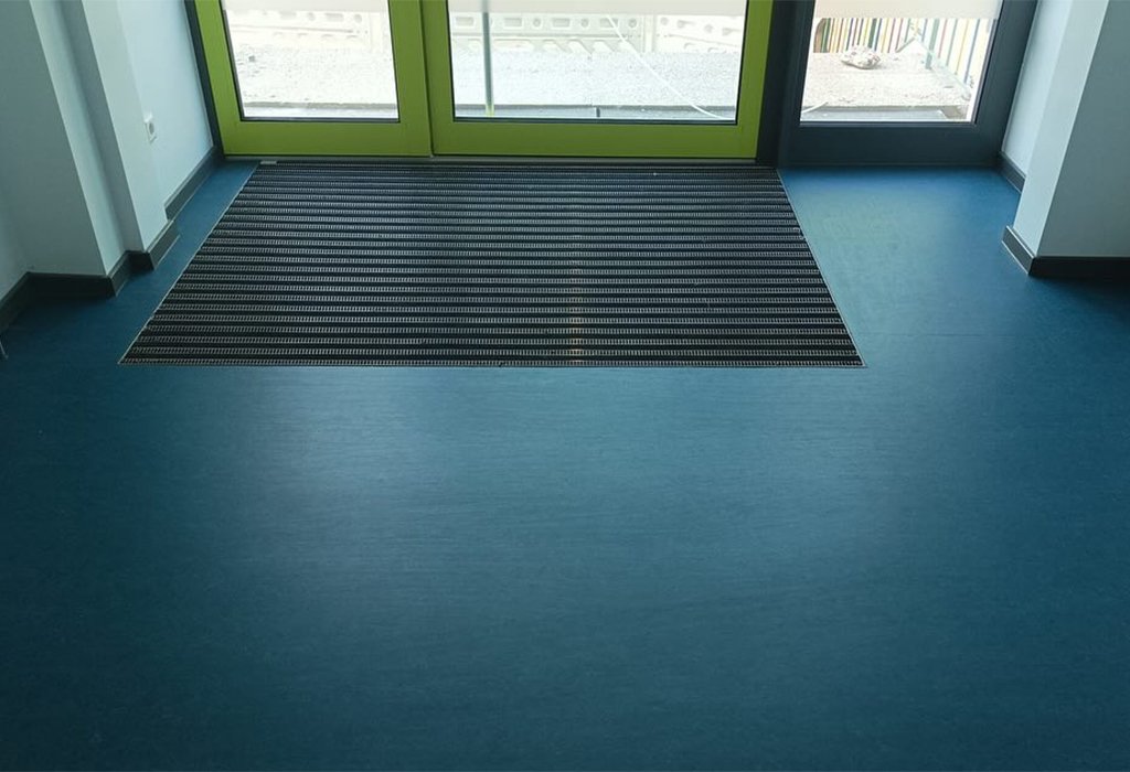 Verlegung von grünem Linoleum mit Intarsien